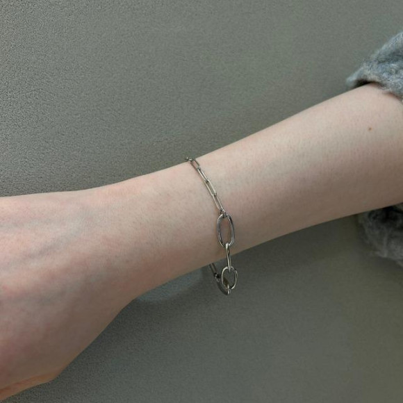 癖がなく、カジュアルになり過ぎないチェーンのブレスレットは、