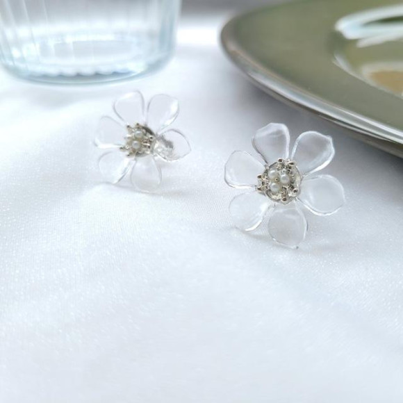 本日は、お花モチーフが可愛らしいクリア フラワー ビジュー ピアスのご紹介です!