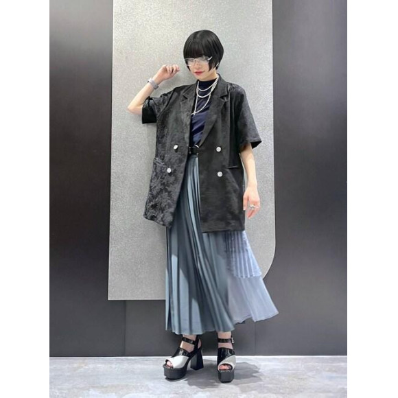 ジャケットはお尻がすっぽり隠れるサイズ感。 ジャガードが高級感あり◎ 羽織るだけで一気に上品見え! スカートもHAREらしいデザイン性のある ポリエステル、レース、シアーの3素材を使用した異素材プリーツスカート! 後ろゴムですぽっと履ける仕様で作成し、着脱がしやすいデザイン 用尺を贅沢に使用した為、高級感もあり、動きの出るシルエットで主役になってくれるアイテム