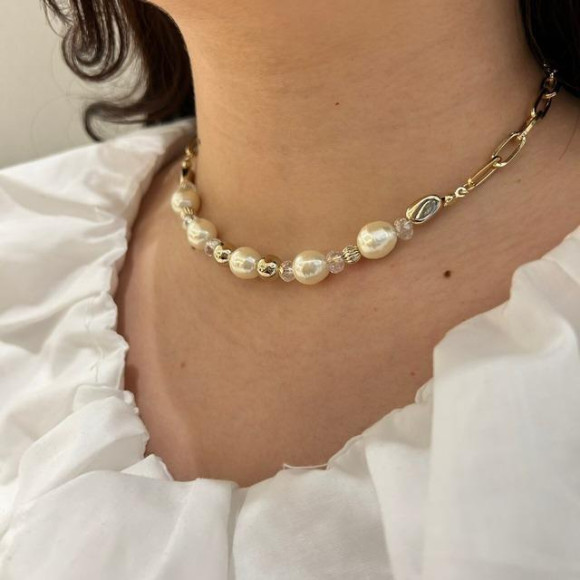 パールビーズとメタルのマンテルチェーンがコンビになったショートネックレス☆彡