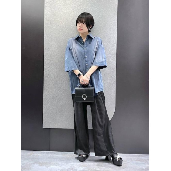 特殊な製品染め加工でヴィンテージライクな表面感を表現したシャツ オーバーサイズなシルエットで1枚で様になります。 ムラ感のある加工ながらも表面感がきれいな素材を使用することで、粗野になり過ぎずきれいめな印象を保ったまま着用できます。