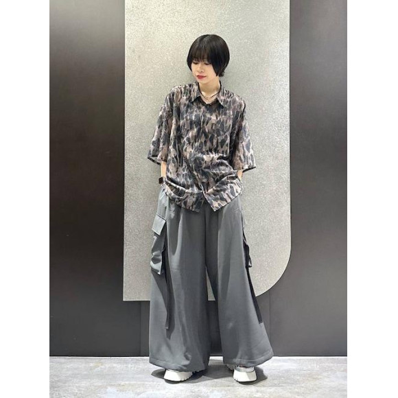 レオパード柄が特徴的な柄シャツ 程よいシアー感で、男女問わずオススメ! ポリエステル素材なので、洗濯してもシワがつきにくくケアも楽チン⭐️ パンツは人気のDABOシリーズから カーゴデザインのパンツが登場! 裾を絞ることもできるので、1着あれば着回しが効きます!