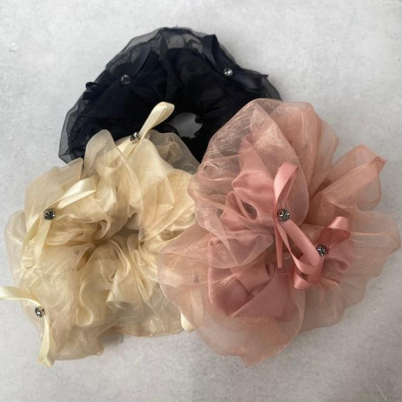 〈ヘアアクセサリー〉オーガンジー ボリューム リボン シュシュ