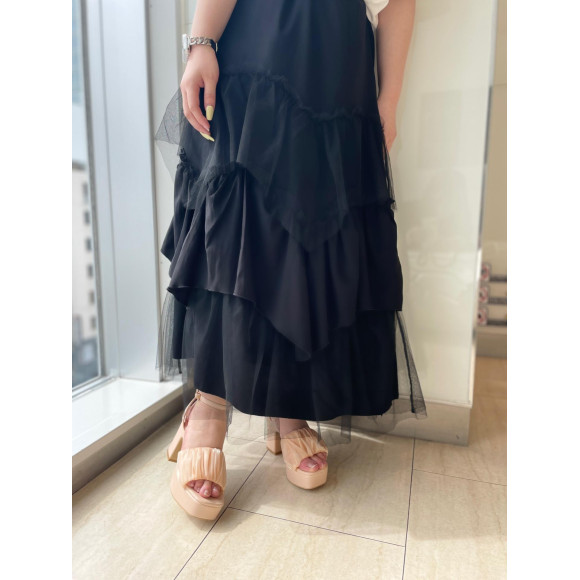 シフォン素材にギャザーを寄せてボリューム感を持たせたアッパーがポイント♡