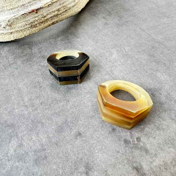 二層になったアクリルとカクカクとした形が他にはないデザインのリング♡