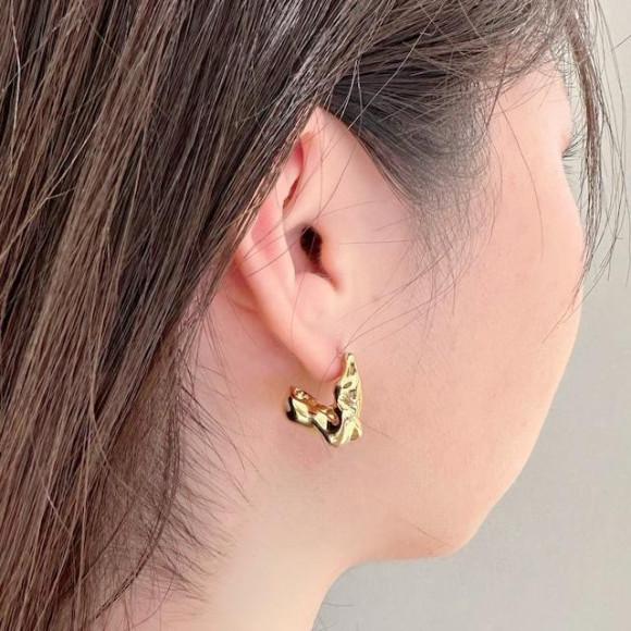 凹凸のあるメタルが耳元のアクセントになるピアスが入荷。