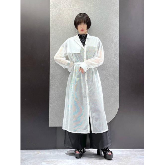 ホワイトのワンピースはメッシュ素材が今っぽい