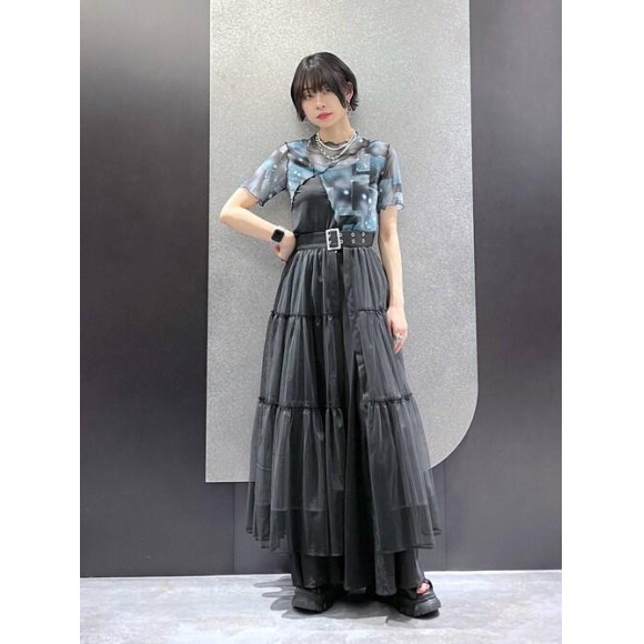 チュールベルトスカートを合わせてモードな雰囲気に!