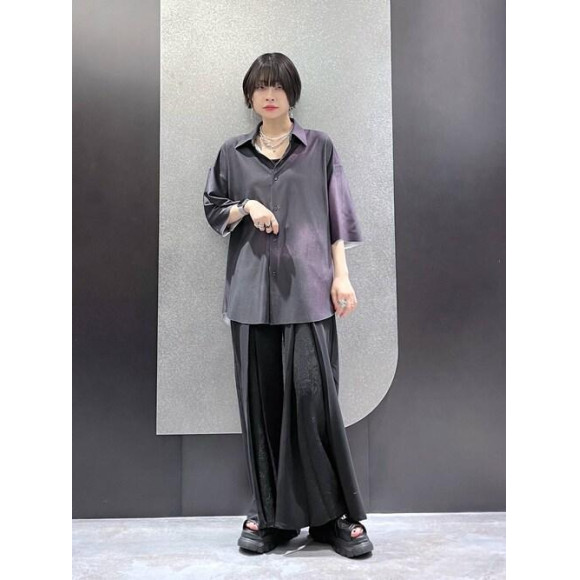 メンズのシャツはプリーツ素材でサラッと着やすい アートグラフィックを全面にプリントすることでデザインのアクセントに。 プリーツの凹凸感が他のシャツと雰囲気が変わり、1枚で決まるアイテム。 ハリ感と落ち感を兼ね備えた生地で着心地もよくシワになりづらくお手入れのしやすさも〇
