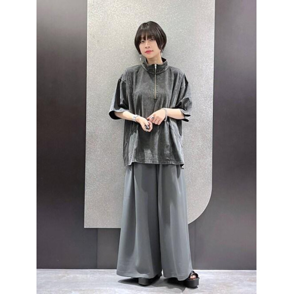 ピグメントハーフジップ ゆったりと着れて一枚着でもインナーでも使える便利アイテム! ヴィンテージ風のデザインはトレンドのストリートスタイルにもぴったりです! ワイドパンツはだぼっと履けるシルエット サラサラとした素材感で男女共におすすめです!