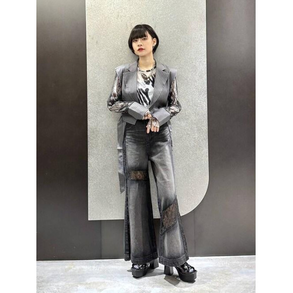 【EDGY MODE】 袖口がレースの切り返しになっているジャケット! 羽織るだけで上品な印象&カッコよく着ていただけます! ショート丈なのでボトムスを問わず、足長効果も! デニムはヘルシーな肌見せが叶う美脚シルエットです