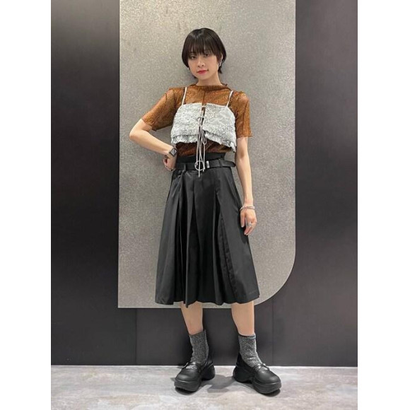 ミディ丈のスカートと合わせる事で大人っぽいスタイリングにしてみました。